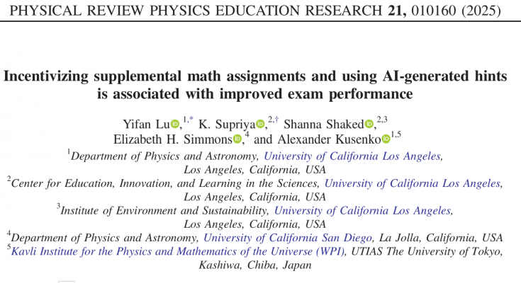 Many introductory science courses require basic understanding of calculus and other quantitative skills. Due to varying levels of prior math preparation among students, there are large grade disparities in these courses. In this project, we will build on promising results from a project funded by UCLA’s Teaching and Learning Center (TLC), described in more detail in our 2025 Physical Review Physics Education Research publication.
