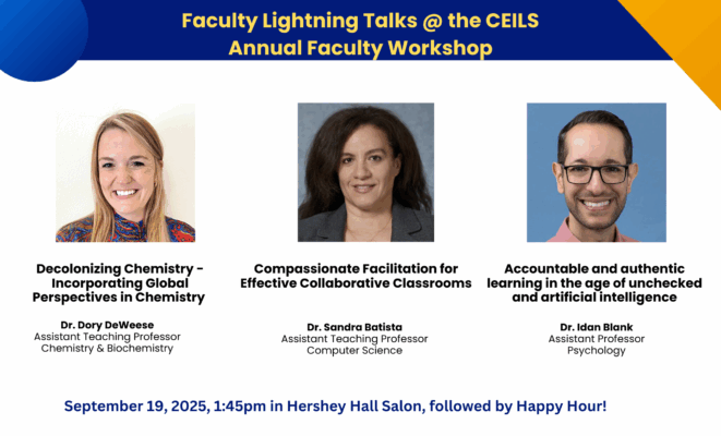 - “Compassionate Facilitation for Effective Collaborative Classrooms” by Dr. Sandra Batista, Assistant Teaching Professor, Computer Science