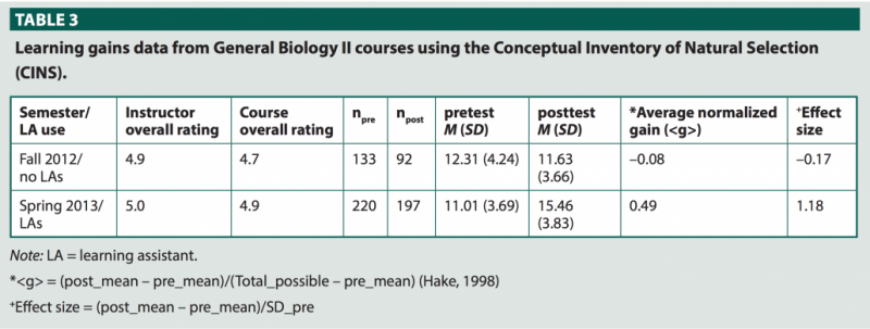 - LA implementation in large lecture courses has helped lower the “activation energy” for active learning and contributed to its spread throughout an institution.